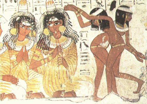 A flauta e a harpa, que surgiram na época das pirâmides, e outros instrumentos musicais, isolados ou em conjunto, também não faltavam nas festas e se associvam ao canto e às palmas para alegrar a reunião, pois os egípcios sempre gostaram de música. Dançarinos e até acrobatas completavam o espetáculo.