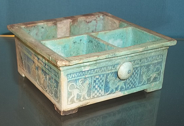 Caixa com desenhos de grifos.