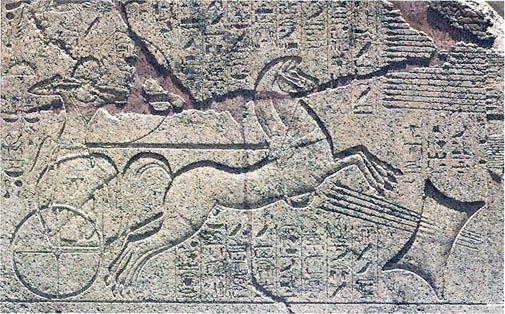 Mas ele era também exímio com arco e flecha e uma inscrição da época louva esse seu talento ao afirmar que suas flechas não erravam a mira e fendiam o alvo de cobre como se fosse papiro. Na estela de granito reproduzida acima, que se encontra hoje no Museu de Luxor, o faraó aparece se divertindo praticando tiro ao alvo sobre um carro de combate. Uma placa de cobre lhe serve de alvo. O rei se vangloriava de poder atravessar com uma flecha um alvo de cobre de 7,62 centímetros de espessura, de tal maneira que do outro lado do alvo sobressaíssem mais de 22 centímetros da flecha, ou até sete nonos do seu comprimento, segundo afirma outra inscrição. Tal alvo glorioso foi exposto à admiração dos egípcios com a oferta de um prêmio para quem repetisse a façanha.